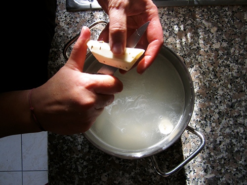 Die Schwarzwurzeln unter fliessendem Wasser gut waschen, mit einem Sparschäler schälen, in ca. 5 cm lange Stücke schneiden und sofort in einen Topf mit Wasser geben, das mit dem Essig und dem Mehl versetzt wurde. Aufkochen und 10 Minuten kochen lassen. Die Karotten und die Pastinaken schälen, schräg in ca. 5 mm dicke Scheiben schneiden und in Salzwasser ebenfalls 10 Minuten kochen.